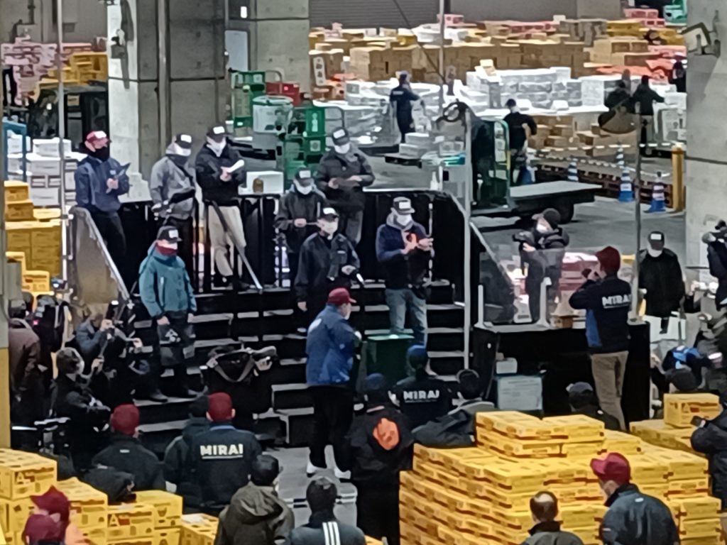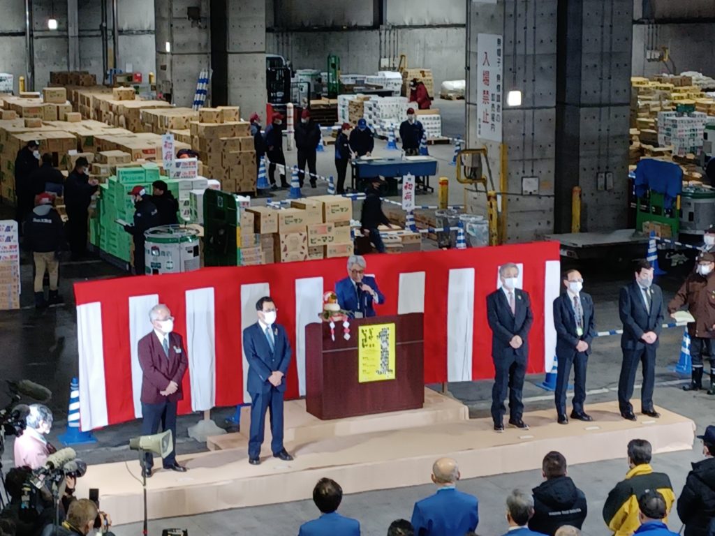 本日大変寒い中、札幌中央卸売市場で今年の初セリが行われました。